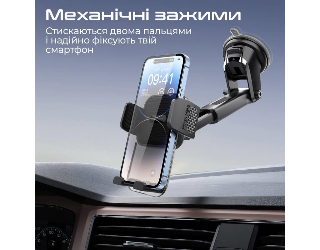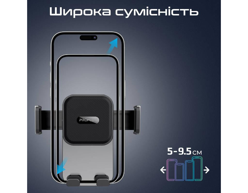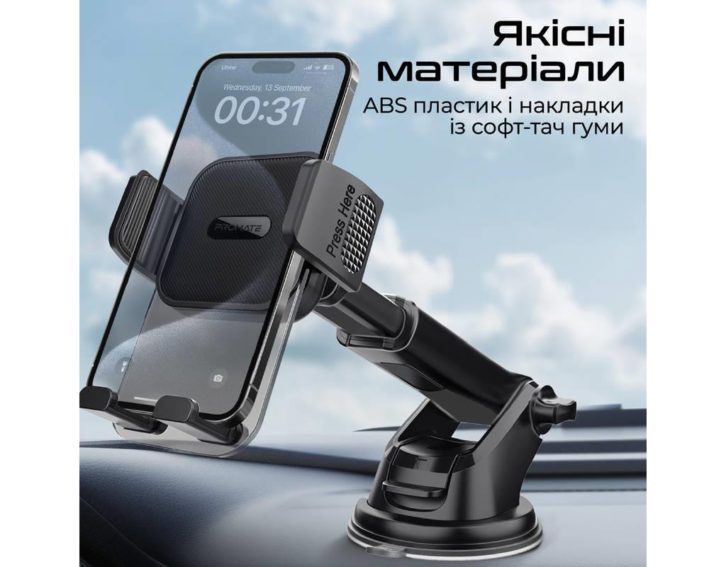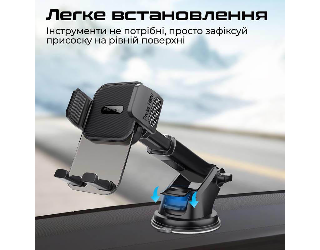 | Promate TransHold – стильный, компактный и легкий автомобильный держатель на присоске, с механическими зажимами. Обеспечит надежную фиксацию любых устройств шириной от 5 до 9.5 сантиметров.