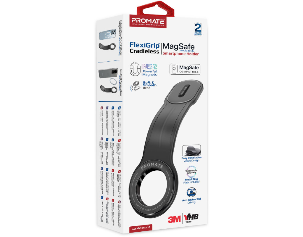 | Laxmount – автодержатель из новой линейки от Promate, отличается своей гибкостью и передовым дизайном в виде магнитного кольца.