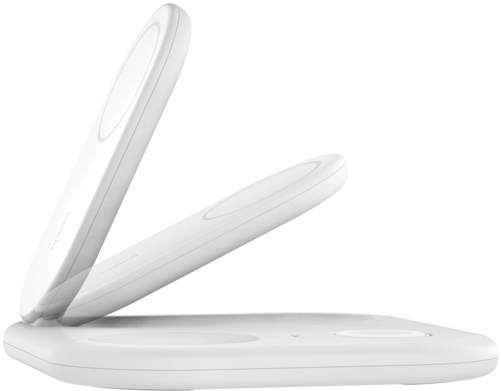 | Belkin 3in1 Magnetic Foldable Charger — идеальное решение для быстрого и удобного беспроводного заряда iPhone, Apple Watch и AirPods одновременно. Благодаря технологии Qi2, вы получаете мощность до 15 Вт для быстрой зарядки, экономя время. Этот складной зарядный устройство с магнитным соединением и регулируемым углом наклона обеспечивает комфорт в любом месте, от дома до отеля. Материалы премиум качества, такие как жидкий силиконовый каучук и прочная шарнирная конструкция, гарантируют долговечность и безопасность. В комплекте блок питания на 36 Вт и кабель USB-C. Изготовленный до 75% из переработанных материалов, Belkin поддерживает экологичность без компромиссов. Наслаждайтесь надежностью и качеством с 2-летней гарантией на этот элегантный аксессуар. |