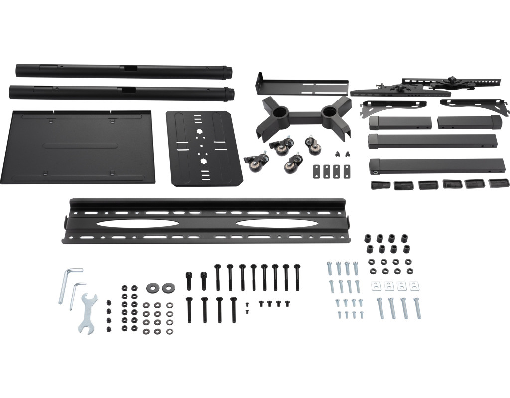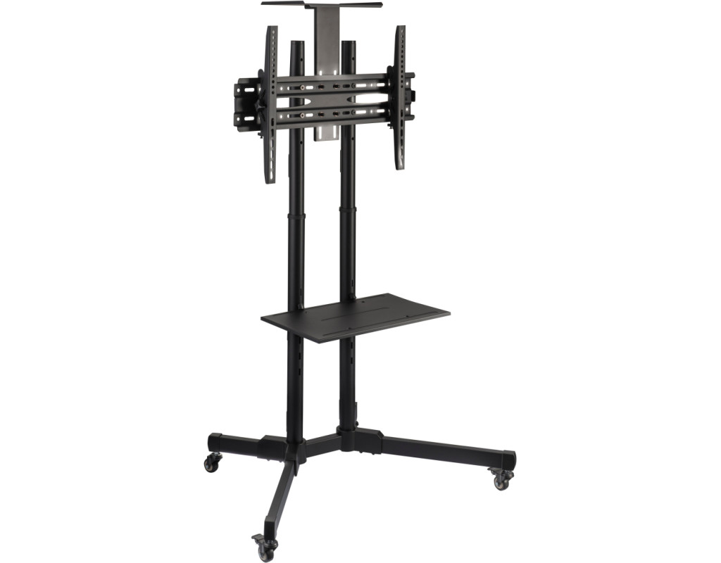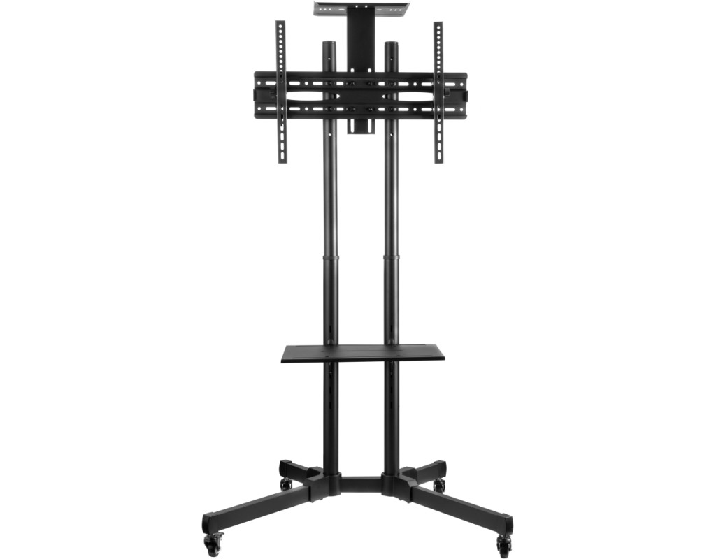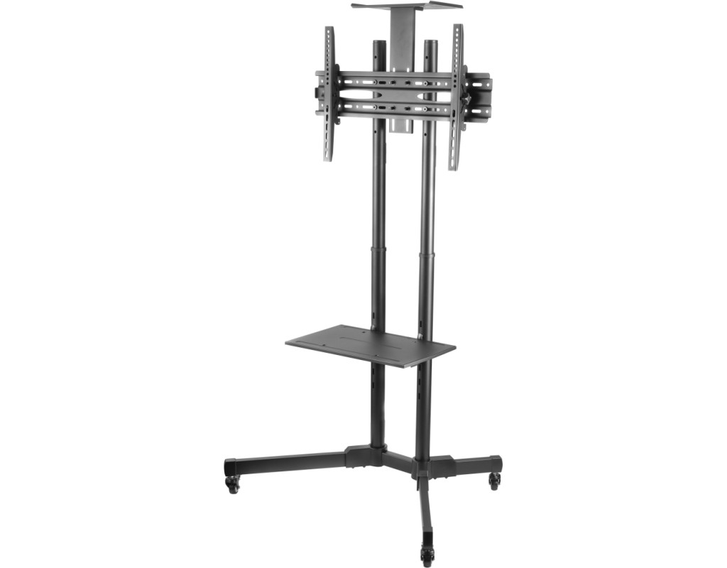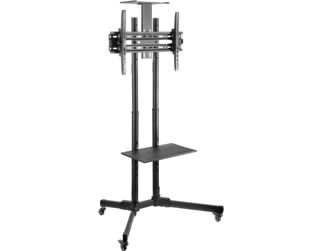 Мобильная презентационная стойка ТВ 2E Тойфкаа изготовлена из стали и пластика. Конструкция черного цвета продумана, а наличие колесиков с фиксаторами облегчает передвижение и закрепление положения в нужном месте. Крепежные элементы надежно держат стенд размером 880 х 665 х 1 803 мм. Кронштейн совместим с системой VESA: 400 х 200, 300 х 300, 200 х 200, 400 х 400, 600 х 400. |