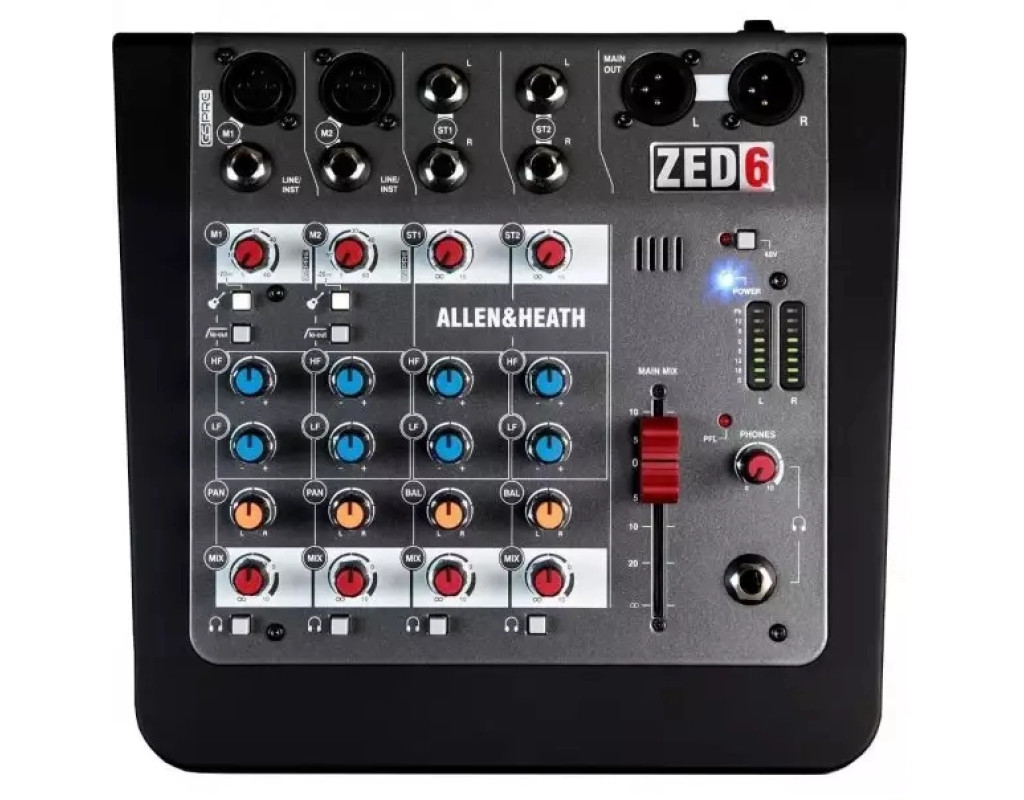 Компания Allen&Heath выпустила новый мини-микшер в нашумевшей аналоговой линейке ZED. Новый микшерный пульт ZED-6 обладает всеми необходимыми характеристиками и высоким качеством. При этом он имеет компактный, портативный формат. Модель ZED-6 имеет характерный для продуктов Allen&Heath стильный внешний вид и отличное качество аудио. Важное преимущество — малый формат — привлекает к нему дополнительное внимание музыкантов и авторов-исполнителей, знающих толк в качестве и удобстве. Микшер можно использовать дома, на живых концертах или в записи треков для YouTube и SoundCloud — он станет универсальным помощником на каждом шагу этого креативного путешествия. Микшерный пульт Allen&Heath ZED-6 имеет 2 моноканала с автономными гнездами XLR и TRS «джек», а также 2 стереоканала. Моноканалы включают схему DI (высокое сопротивление) для гнезд «джек», что позволяет подключать гитары непосредственно к микшеру без лишних проблем вроде дополнительных DI-боксов. Микшерый пульт ZED-6 обеспечивает оптимальное качество звука благодаря новому предусилителю GSPre, созданному на основе профессиональной студийной консоли GS-R24, обеспечивающей низкий уровень шума и большой хедрум. Выполненный в новом, привлекательном дизайне, с металлической передней панелью, устройство имеет 2-полосный параметрический эквалайзер на всех входных каналах, 60-миллиметровый фейдер главного микса, мониторинг каналов и фантомное питание 48 В. Уникальным являются индивидуальные платы входных каналов, закрепленные гайками регуляторы и универсальный вольтаж питания (100-240 В) для работы в форс-мажорных условиях. ZED-6 сочетает в себе высококлассный дизайн профессиональной аудиоаппаратуры и компактность корпуса, содержащего в себе все необходимое для работы. |