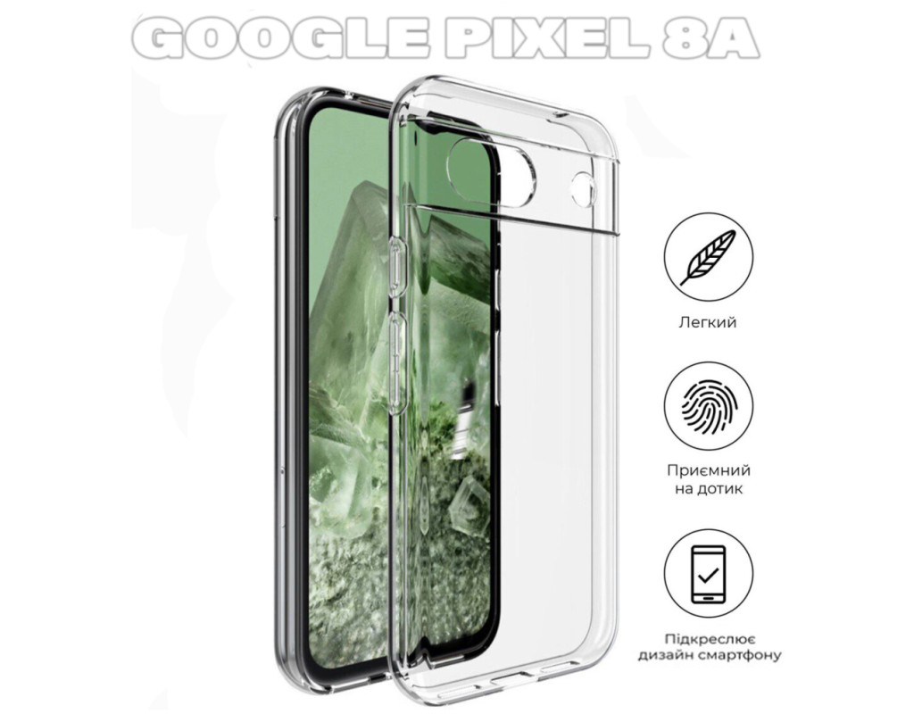 совместимость с моделями - Google Pixel 8a, Тип чехла для телефона - накладка, Назначение - модельный, Цвет - прозрачный