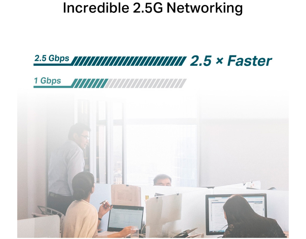 Невероятная сеть 2.5G 2,5-гигабитный Ethernet обеспечивает чрезвычайно высокую скорость передачи данных до 2,5 миллиардов бит в секунду - 2,5× быстрее, чем стандартный Gigabit Ethernet. Для задач, требующих интенсивной пропускной способности, будь то локальная передача данных или доступ к Интернету, TX201 справляется с этой задачей. Домашнее хранение, обмен за считанные секунды Для локальных соединений адаптер 2,5G PCIe помогает построить молниеносный транспортный канал между центральным устройством хранения и другими рабочими машинами в вашей локальной сети. Локальная передача данных станет для вас легкой задачей, поскольку вы легко справляетесь с задачами, требующими пропускной способности, у себя дома или в офисе. Чрезвычайно быстрый Интернет 2.5G С доступом к Интернету со скоростью 2,5 Гбит/с ваши игры будут полностью оптимизированы со значительным ускорением скорости, задержки и реагирования. Загружать игры большого размера, бесперебойную прямую трансляцию и массивное резервное копирование данных через облако так же просто, как выбрать своего персонажа. Универсальная совместимость 2.5G Base-T имеет обратную совместимость с несколькими скоростями передачи данных, включая 2,5 Гбит/с, 1 Гбит/с, 100 Мбит/с и 10 Мбит/с подключения Base-T. Порт 2.5G Ethernet автоматически согласовывает высокоскоростные соединения с более низкими, что позволяет плавно переходить к сети 2.5G. Поддержка QoS