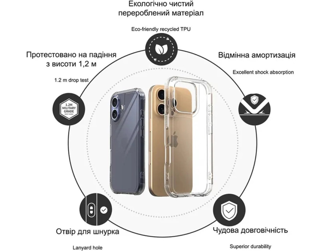 Чехол для мобильного телефона Drobak Acrylic Case with Airbag для Apple iPhone 16 Plus (949412)