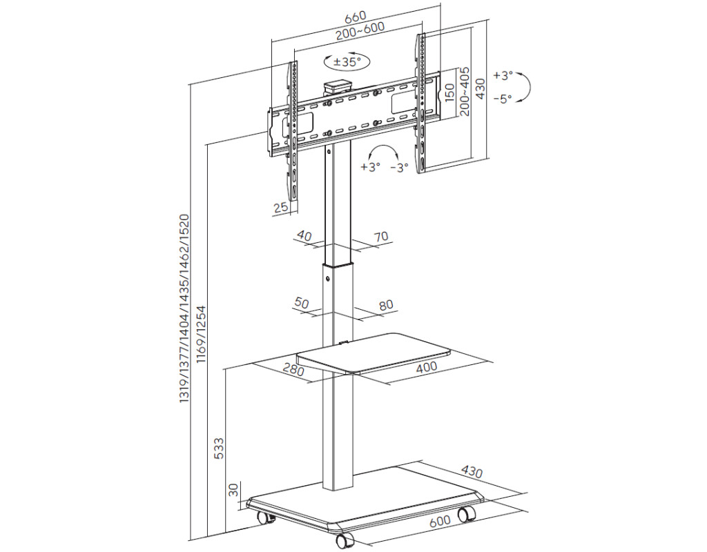 Стойка с креплением для телевизора OfficePro TVS302B обеспечивает оптимизацию просмотра и хранения для телевизоров от 37 до 75 дюймов. Эта стойка отличается своей стабильностью, мобильностью, возможностью регулировки высоты и угла наклона, а также функциональной полкой для оборудования. Кроме того, в конструкции реализована система организации кабелей и оборудована надежными колесами с блокировкой.