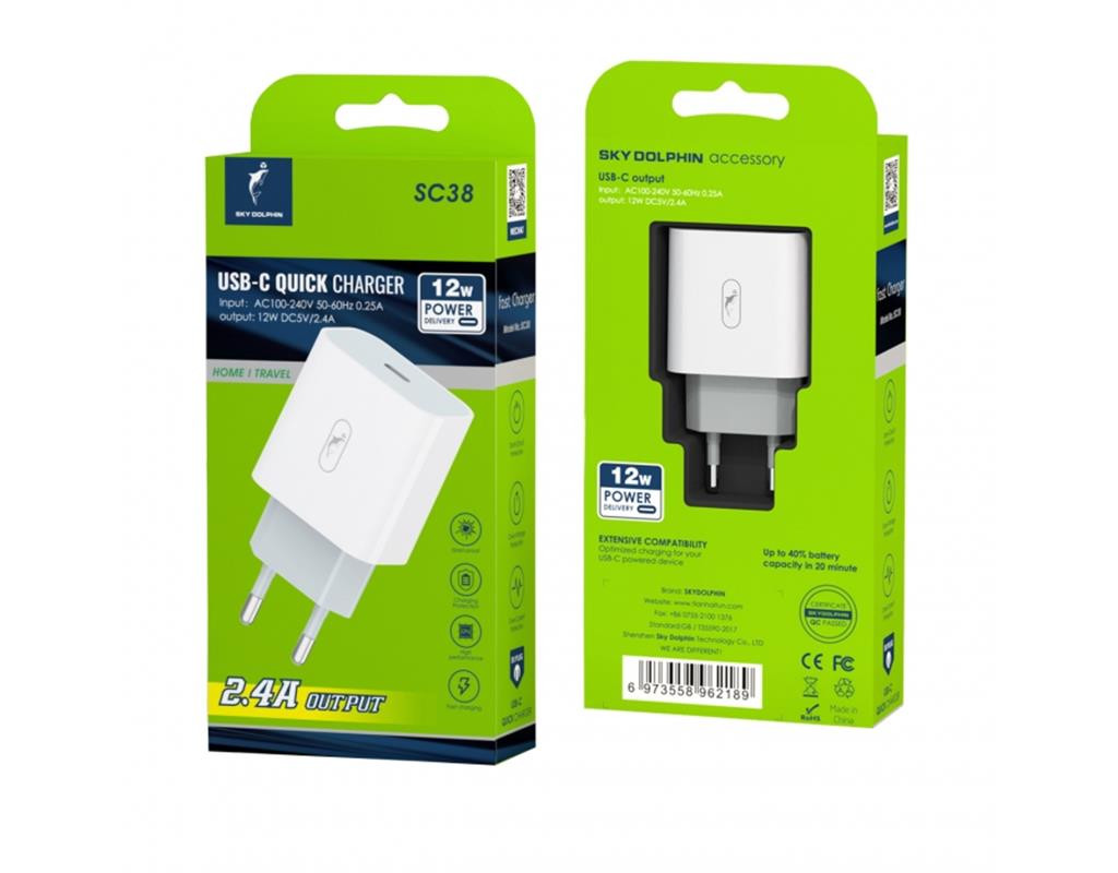 Сетевое зарядное устройство SkyDolphin SC38T (1USBx2.4A) White (SDMZP-000181)