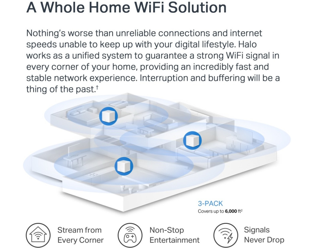 Оснащенный Wi-Fi 6, Halo H60X улучшает практически все аспекты вашей сети: быстроту, эффективность и пропускную способность. Wi-Fi решение для всего дома Нет ничего хуже, чем ненадежное соединение и низкая скорость Интернета, не соответствующая вашему цифровому образу жизни. Halo работает как унифицированная система, которая гарантирует мощный Wi-Fi сигнал в каждом уголке вашего дома, обеспечивая невероятно быструю и стабильную работу сети. Прерывание и буферизация останутся в прошлом. Настоящий бесшовный роуминг с единственной сетью Система Halo автоматически подключает ваши телефоны или планшеты к наилучшему модулю, обеспечивая поистине бесперебойную работу вашей сети. Больше внезапной потери сигнала или задержки через Wi-Fi, когда вы перемещаетесь по дому. Приложение MERCUSYS поможет в настройке в нескольких шагах Не имея никаких технических знаний и не читая сложных инструкций, просто следуйте инструкциям в программе. Настройте mesh-сеть в считанные минуты. |