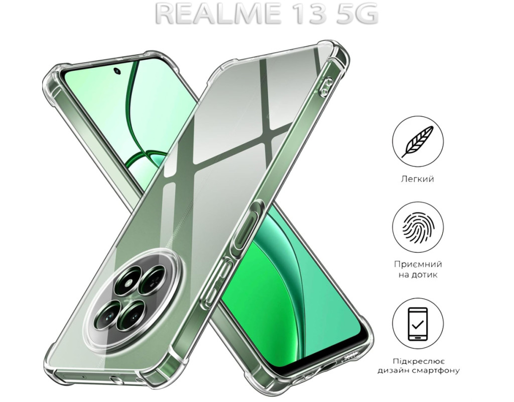совместимость с моделями - Realme 13 5G, Тип чехла для телефона - накладка, Назначение - модельный, Цвет - прозрачный