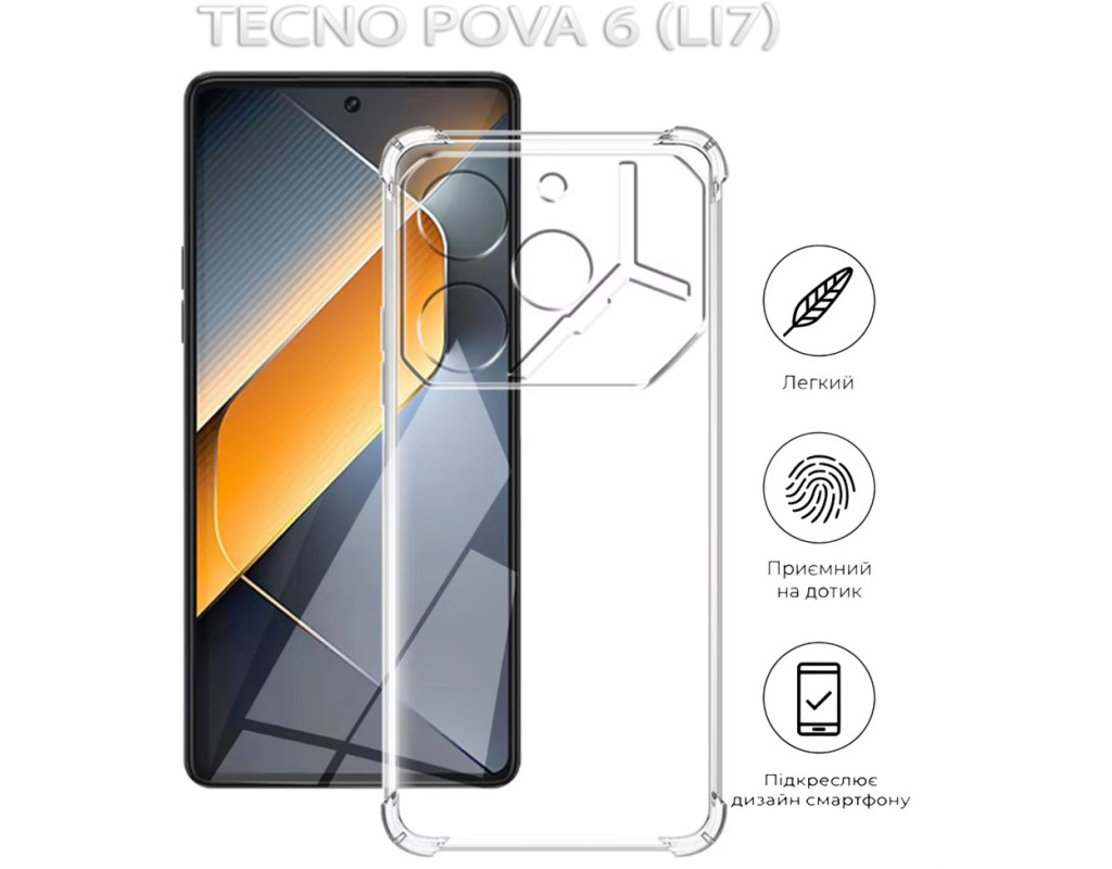 совместимость с моделями - Tecno POVA 6, Тип чехла для телефона - накладка, Назначение - модельный, Цвет - прозрачный
