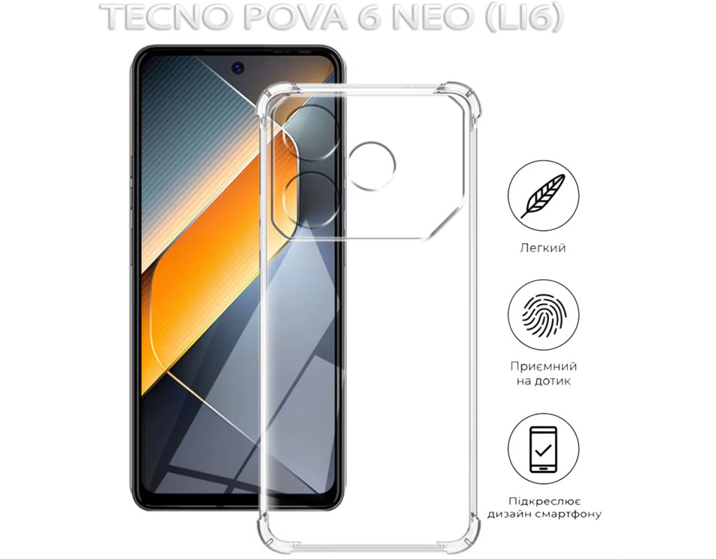 совместимость с моделями - Tecno POVA 6 Neo, Тип чехла для телефона - накладка, Назначение - модельный, Цвет - прозрачный