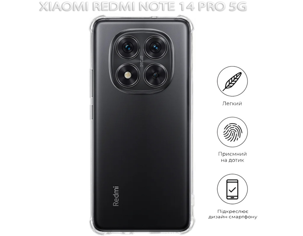 совместимость с моделями - Xiaomi Redmi Note 14 Pro 5G, Тип чехла для телефона - накладка, Назначение - модельный, Цвет - прозрачный