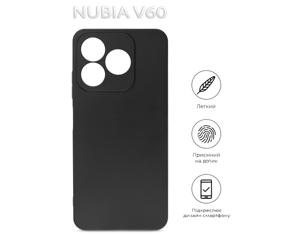совместимость с моделями - ZTE Nubia V60, Тип чехла для телефона - накладка, Назначение - модельный, Материал - силикон, Цвет - черный