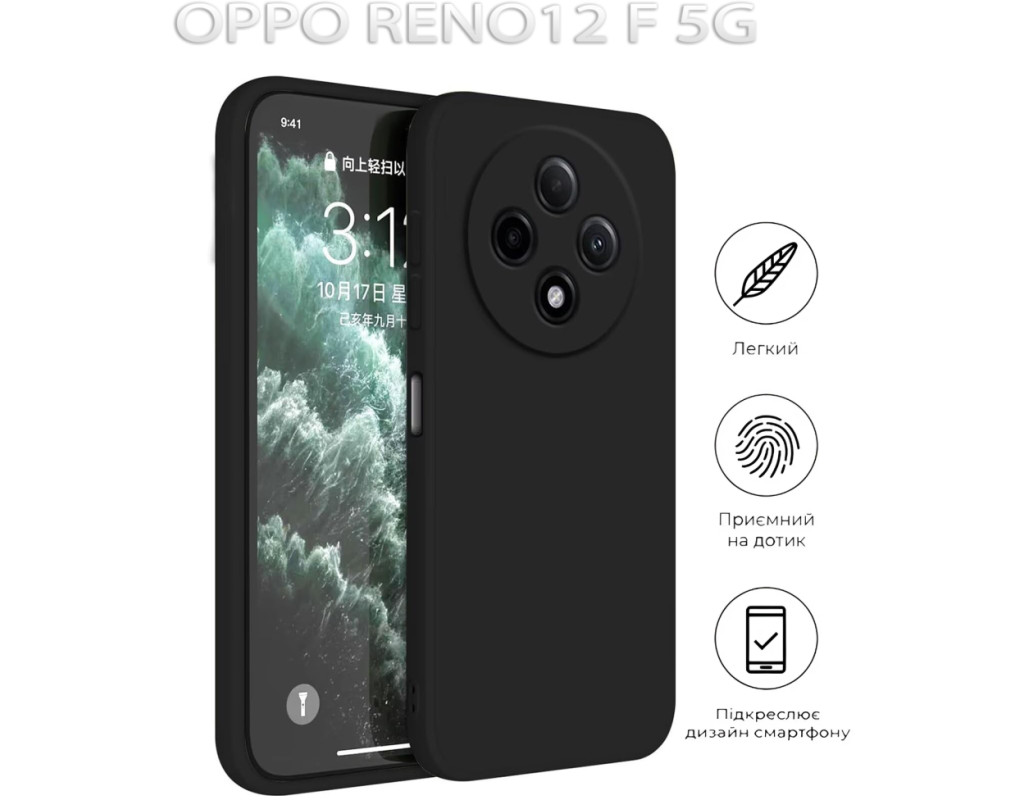 совместимость с моделями - OPPO Reno12 F, Тип чехла для телефона - накладка, Назначение - модельный, Материал - силикон, Цвет - черный
