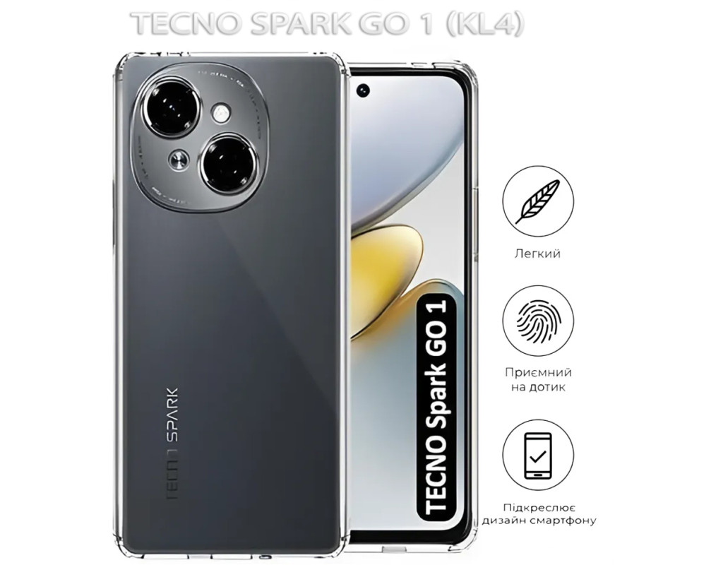 совместимость с моделями - Tecno Spark Go 1, Тип чехла для телефона - накладка, Назначение - модельный, Материал - силикон, Цвет - прозрачный