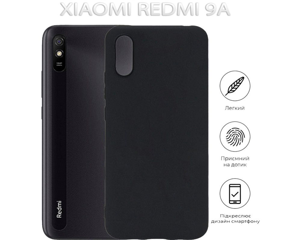 совместимость с моделями - Xiaomi Redmi 9A, Тип чехла для телефона - накладка, Назначение - модельный, Материал - силикон, Цвет - черный