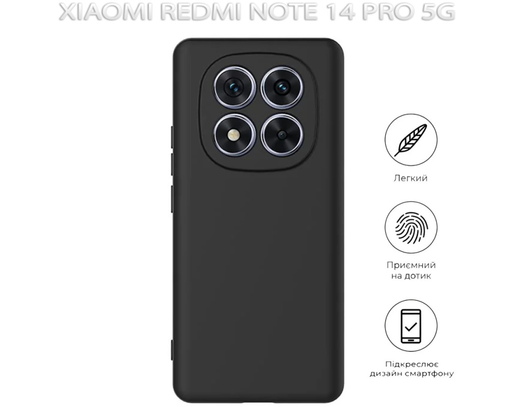совместимость с моделями - Xiaomi Redmi Note 14 Pro 5G, Тип чехла для телефона - накладка, Назначение - модельный, Материал - силикон, Цвет - черный