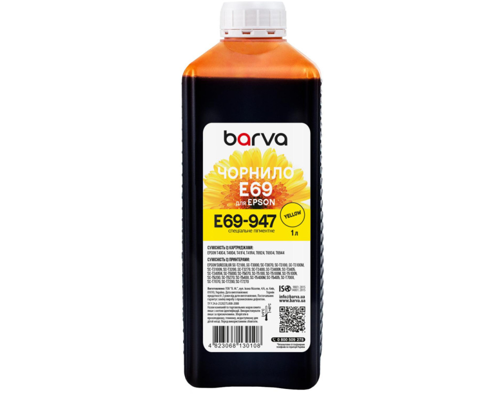 | Більшість з нас чули, що на відміну від лазерної техніки, яка формує зображення за допомогою тонера, струменева техніка використовує для друку спеціальні чорнила (краска для принтерів). Чорнило для Epson T6934 спеціальне 1 л, пігментне, жовте Barva (E69-947) використовується переважно для заправки ПЗК та СБПЧ. Чорнила E69-947 Barva мають офіційну гарантію від виробника – АТ000953. При виборі чорнила для принтерів Вам також необхідно звернути увагу на колір картриджа, який плануєте заправляти. Дані чорнила Barva мають колір – yellow (жовтий). Виробник гарантує безперебійну роботу чорнил протягом всього терміну використання, який складає – 2 роки. Тип чорнил E69-947 Barva – Пігментні. Українська компанія ТОВ «В.М.» займається виробництвом чорнил під торговою маркою Barva вже багато років. На базі власної лабораторії відбувається як розробка нових формул, так і неперервний контроль якості продукції, що випускається. При виробництві чорнил виробник слідує стандартам ISO 9001:2015 та ISO 14001:2015. Чорнила Epson ТМ Barva повністю сумісні не тільки з чорнилами ТМ Patron, але й з чорнилами інших виробників. Для досягнення оптимального результату в передачі кольору та стійкості до світла ми рекомендуємо використовувати комбінацію – Фотопапір для струменевого друкуBarva + чорнила Barva. Дана фарба для принтера Barva має фасовку – 1 л: Фасовки 1 кг/1 л/18 кг будуть зручними для сервісних центрів або користувачів, які часто стикаються з необхідністю заправки картриджа або резервуарів друкуючих пристроїв.. Також рекомендуємо Вам звернути увагу на ще один варіант фасовки для сервісних центрів– Service-Pack. Ви можете купити Чорнило для Epson T6934 спеціальне 1 л, пігментне, жовте Barva (E69-947) в нашому інтернет-магазині з доставкою по Києву та всій Україні. |