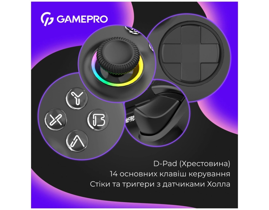 Геймпад GamePro GPX13B 2.4G/BT 5.1/USB/PC/iOS/Android RGB Black (GPX13B)