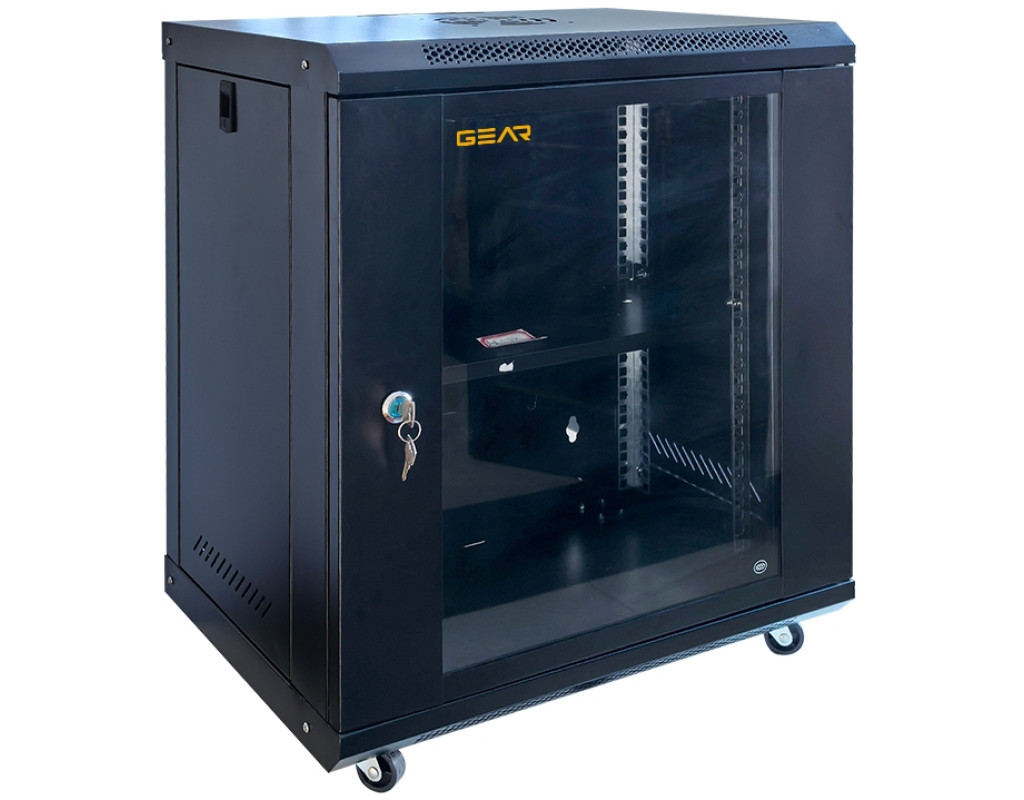 Шкаф настенный GEAR 12U 19'' 600x600x600 мм, + полка 19", black (GWMSN-12U-600-600)