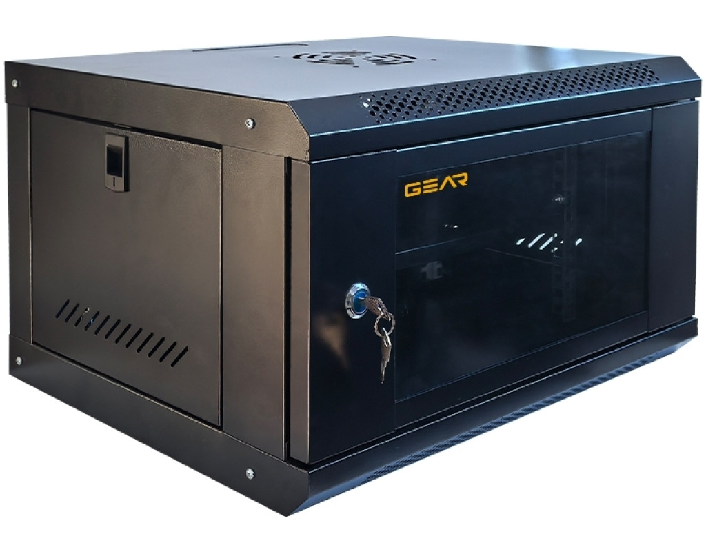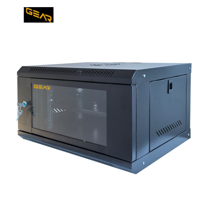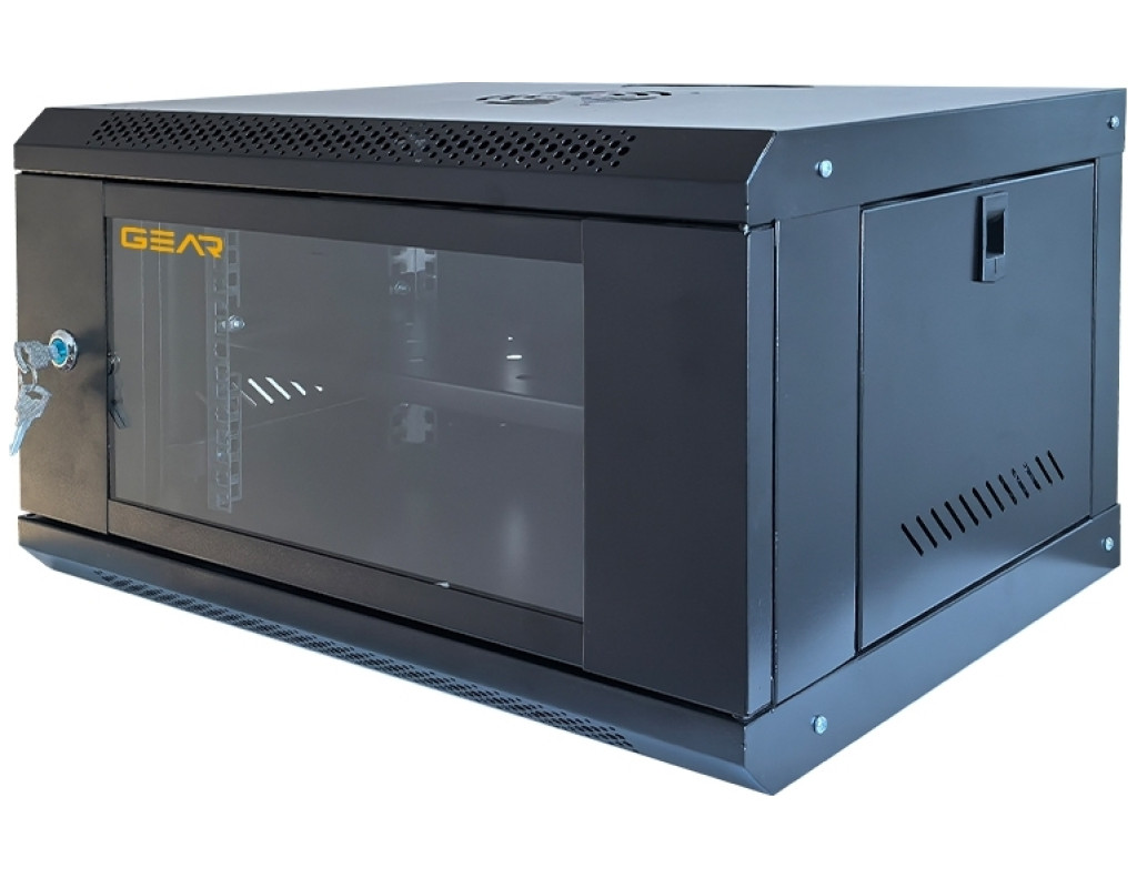Шкаф настенный GEAR 6U 19'' 600x600x300 мм, + полка 19", black (GWMSN-6U-600-600)