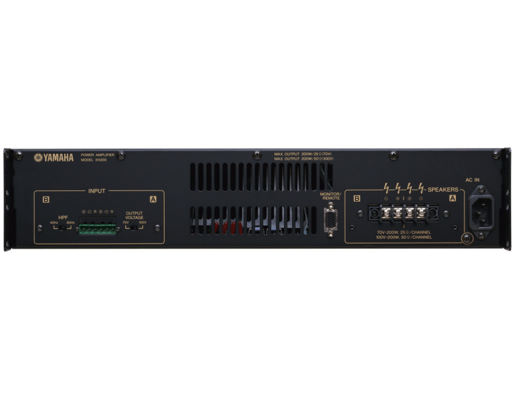 Усилитель XH200 идеально подходит для использования с высокоомными акустическими системами для театров, залов и озвучивания многих помещений одновременно. Кроме удивительно небольшого веса усилитель XH200 изготавливается в компактном корпусе стандарта 2U, подходящем практически для любой системы озвучивания. Это сочетание высокой мощности и небольших размеров удалось реализовать благодаря использованию современного импульсного блока питания. Кроме того, усилитель XH200 поддерживает дистанционное управление и контролирование параметров с помощью внешних устройств.