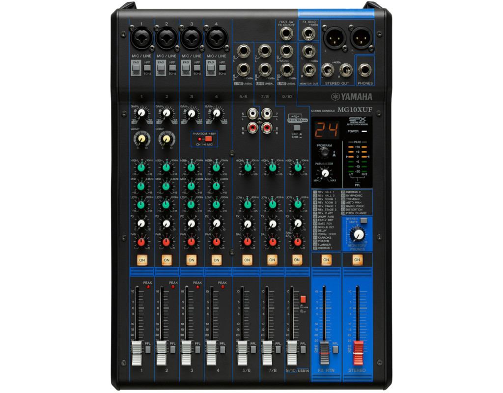| Компактный микшерный пульт c USB аудиоинтерфейсом Компания Yamaha всегда стремилась предоставить звукорежиссерам максимально чистый сигнал вместо дополнительной обработки или окрашивания, чтобы придать ему "фирменный" звук, и серия MG не является исключением. Эти микшерные пульты, воплощающие философию прозрачного звучания, обеспечивают уровень чистоты и качества звука, не имеющий себе равных в своем классе. Микрофонные предусилители D-PreМикшерные пульты новой серии MG оснащаются высококачественными дискретными преампами D-PRE студийного уровня типа Class A, разработанными Yamaha. Преампы работают по инверсной схеме Дарлингтона, состоящей из двух транзисторов в последовательном включении, и обеспечивающей в итоге увеличенный уровень сигнала при более низком импедансе. Передавая натуральный «жирный» бас и гладкие открытые верха с очень малым коэффициентом искажений, преампы D-PRE способны работать в необыкновенно широком диапазоне частот. Тем самым это говорит о способности легко «переварить» сигнал от любого источника без чрезмерного его «окрашивания» и сохраняя все нюансы его оригинальной волновой формы. Обладание такой «чистой» линейной звуковой платформой сэкономит ваше время, исключит излишнюю эквализацию и обработку эффектами, часто необходимую для того, чтобы «вылечить» микс. Высококачественные операционные усилителиМикшерные пульты серии MG оснащены новым высококачественным операционным усилителем MG01, разработанным совместно с производителем полупроводниковых приборов специально для консолей этой серии. В то время как большинство операционных усилителей ориентированы на электрический дизайн и эффективность, мы с производителем фокусировались прежде всего на качестве звучания. MG01 характеризуется переработанной электрической схемой, в которой оптимизированы внутренние компоненты и коммутация с использованием высококачественной кремниевой подложки и медной проводки для максимальной детализации звучания. Фантомное питание и дискретное понижение чувствительностиОснащенные возможностью фантомного питания, пульты MG-серии позволяют в полной мере насладиться увеличенным частотным диапазоном и высокой чувствительностью конденсаторных микрофонов. Входные каналы пультов позволяют подключать источники как микрофонного, так и линейного уровней. А переключатель PAD понижает чувствительность входа для сигналов большого уровня, что часто встречается при работе с подзвученными инструментами во время выступления. Эта функция позволит избежать клиппинга и искажений звука. Встроенный процессор эффектов SPXГрамотная обработка эффектами всегда придает миксу лоск и профессионализм, независимо музыкальный ли это материал или нет. Модели пультов MG с аббревиатурой X / XU оснащаются цифровыми мультиэффект процессорами Yamaha SPX, предлагая разностороннюю коллекцию из 24 эффектов. SPX поможет раскрасить ваш микс, добавив глубину в речевые программы и атмосферу в выступление живой группы. В частности качественный «реверб» и задержка расширяют пространственные рамки звука с неподдельным реализмом и натурализмом. В модели MG10XUF можно даже подключить опциональную педаль-футсвич FC5 для активации и выключения эффекта. КомпрессорыКомпрессоры играют определяющую роль в практически любой задаче записи или звукоусиления, ре