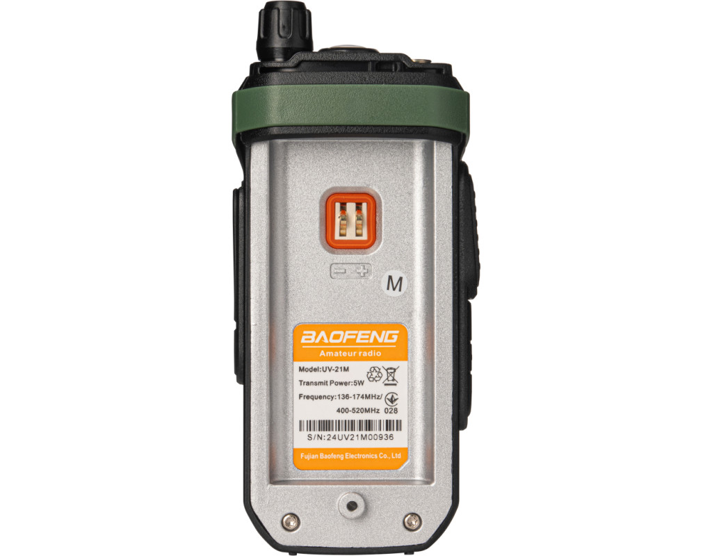 Вы можете наслаждаться природой и оставаться на связи благодаря надежной и стильной рации Baofeng UV-21M. Отправляйтесь в однодневное путешествие или в поход с рацией Baofeng UV-21M, и вы будете доступны на расстоянии до 5 км. Эта модель оснащена альтернативным способом зарядки: на аккумуляторе станции находится разъем USB Type-C. Это означает, что пользователь может заряжать радиостанцию от любого источника питания с USB, включая автомобильный прикуриватель, портативное зарядное устройство или зарядную станцию. Радиус действия сети зависит от рельефа местности и условий прохождения радиоволн. Основные функции: