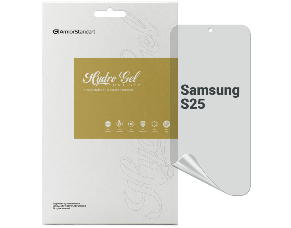 Назначение - для камеры телефона, Вид покрытия - конфиденциальное, гидрогелевая, Совместимость с моделями - Samsung Galaxy S25, Количество в упаковке - 1 шт