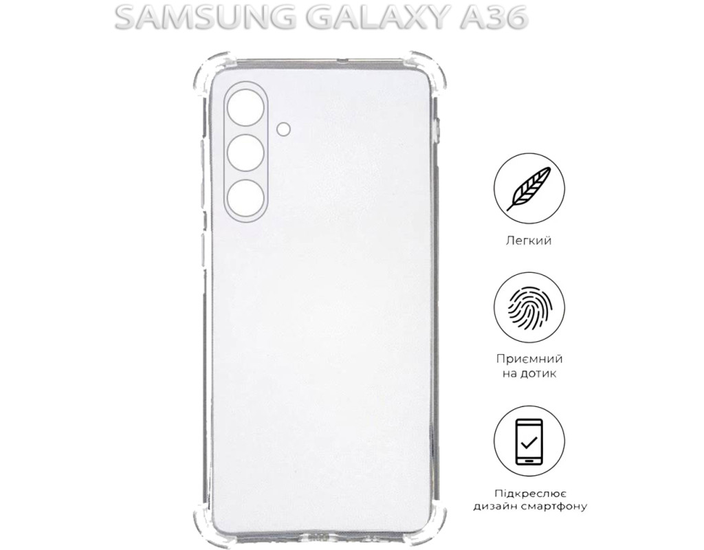 совместимость с моделями - Samsung Galaxy A36, Тип чехла для телефона - накладка, Назначение - модельный, Цвет - прозрачный