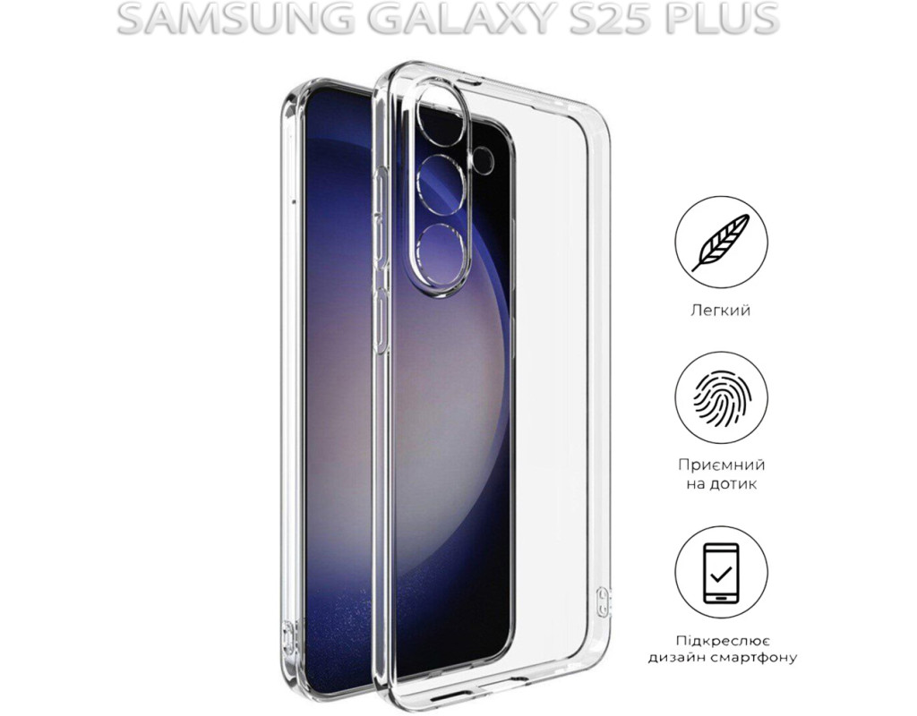 совместимость с моделями - Samsung Galaxy S25 Plus, Тип чехла для телефона - накладка, Назначение - модельный, Материал - силикон, Цвет - прозрачный