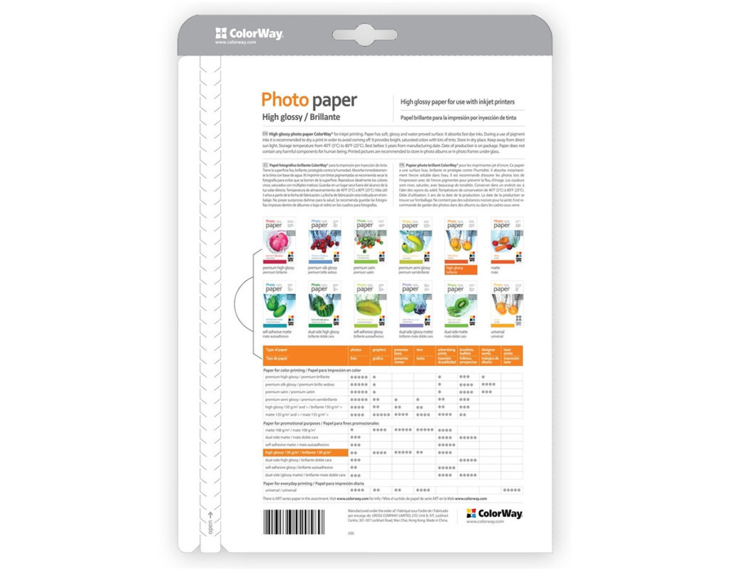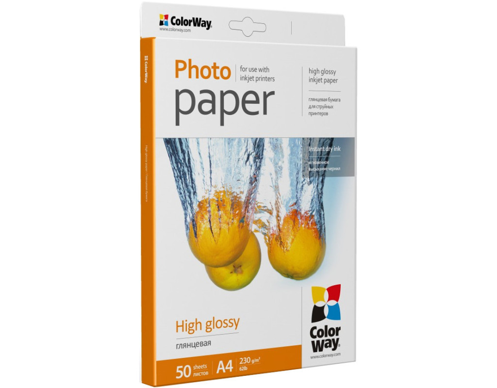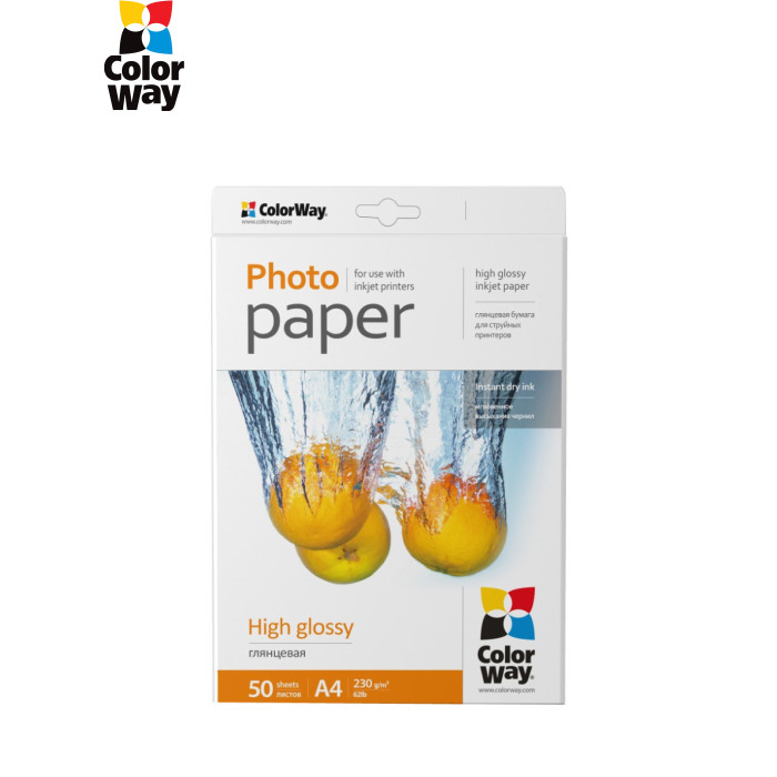 | Бумага ColorWay A4 (PG230050A4) Наиболее распространенный тип односторонней фотобумаги для струйной печати. Такая бумага имеют гладкую, блестящую, глянцевую влагозащищенную поверхность. Фотографии, отпечатанные на такой бумаге, обладают насыщенными и яркими цветами с множеством оттенков и цветовых градаций. Глянцевые бумаги по виду наиболее соответствуют фотографии. Это лучшие бумаги для печати ярких фотореалистичных изображений. Глянцевая фотобумага мгновенно впитывает водорастворимые чернила, при печати пигментными чернилами рекомендовано просушивать отпечаток для предотвращения смазываниях с поверхности. Подходит для термической и пьезоэлектрической методов печати. Рекомендовано хранить отпечатанные фотографии в альбомах или в рамках под стеклом. |