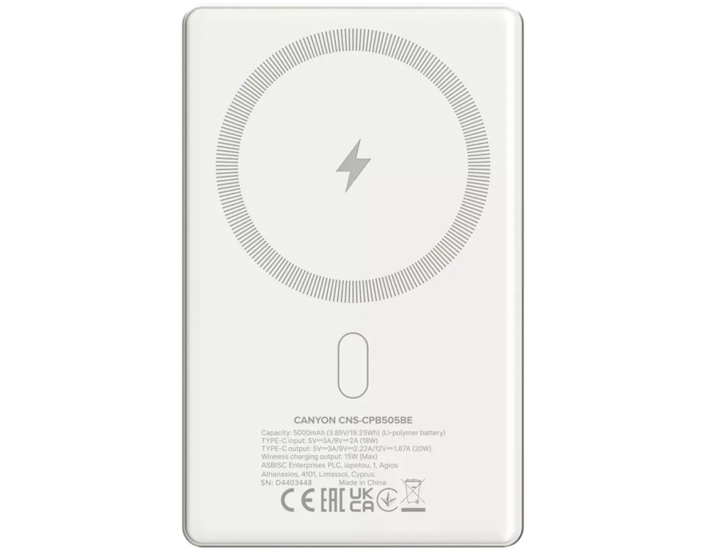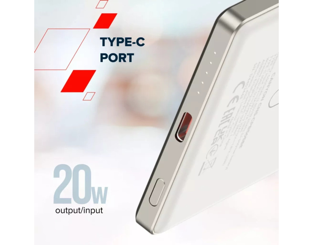 Батарея универсальная Canyon 5000mAh OnPower 505 slim Magsafe PD/20W Beige (CNS-CPB505BE)