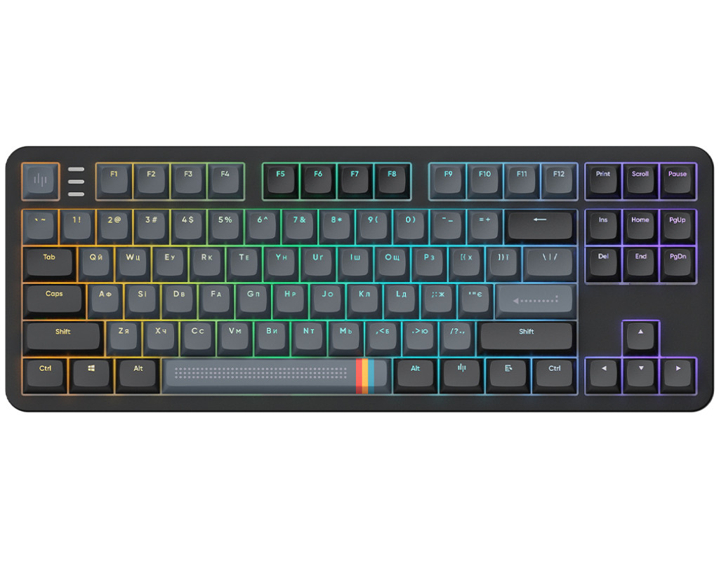 | Клавиатура Dark Project ALU87 Midnight ABS RGB Mech G3MS Zircon Black представляет собой настоящее произведение искусства для геймеров, которые стремятся достичь новых высот в своем игровом мастерстве. Изготовлена с использованием современных технологий, она идеально подходит для тех, кто ценит качество, стиль и производительность в каждой детали. Одно из главных преимуществ этой клавиатуры — это механические переключатели G3MS Zircon, которые обеспечивают невероятно точную и быструю реакцию на нажатие. Благодаря технологии предварительного смазывания они работают плавно и бесшумно, что повышает комфорт во время длительных игровых сессий. Дополнительная двухслойная шумоизоляция помогает избежать посторонних звуков и полностью сосредоточиться на игре. Алюминиевый корпус клавиатуры добавляет ей прочности и гарантирует долговечность даже при интенсивном использовании. Стильное темное покрытие в черном цвете придаёт клавиатуре элегантность, делая её эстетическим дополнением к вашему игровому пространству. Компактный формат TKL (Tenkeyless) обеспечивает больше пространства для мыши, что особенно ценят геймеры, участвующие в динамичных играх. Роскошная RGB подсветка клавиш с возможностью полной настройки позволяет превратить игровой опыт в настоящее световое шоу. Выбор из множества цветовых схем и эффектов обеспечивает адаптацию подсветки под личные предпочтения. Интуитивно понятное веб-приложение для управления подсветкой, профилями и макросами работает на всех популярных ОС, включая Windows, Mac OS, Linux и iOS. Подключение осуществляется через USB-интерфейс, что гарантирует надёжное соединение без задержек — критический аспект во время интенсивных игровых соревнований. Двухъязычная раскладка (украинская и английская) делает эту клавиатуру идеальным выбором для пользователей с разными языковыми потребностями. Клавиатура Dark Project ALU87 Midnight не только соответствует современным стандартам, но и определяет новые, благодаря своей эргономике и адаптивности. Она станет безупречным выбором как для профессиональных геймеров, так и для новичков в мире киберспорта, предоставляя непревзойдённый эффект от игры. |