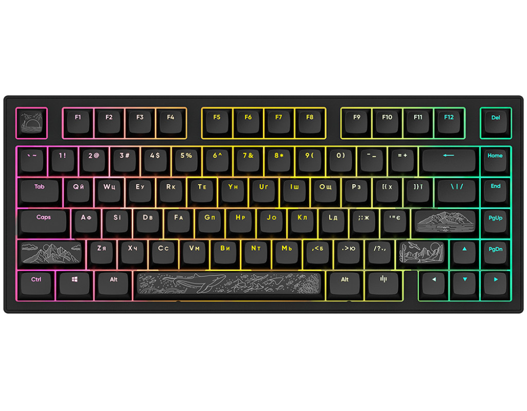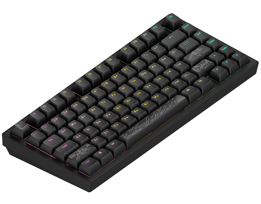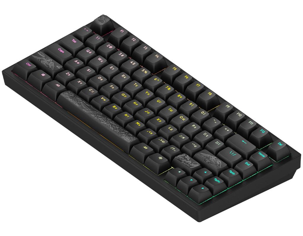 | Клавиатура Dark Project ALU81 Terra Nostra PBT RGB Mech G3MS Moonstone Black — это настоящий шедевр геймерского искусства, который гармонично сочетает в себе высочайшее качество, эстетику и инновационные решения. Разработана для тех, кто ценит абсолютный комфорт и производительность, эта игровая клавиатура с подсветкой прекрасно подходит как для захватывающих игр, так и для повседневного использования. Конструкция изготовлена из высококачественного алюминия, что придаёт ей прочность и изысканный вид. Поверхность с гравировкой навевает мысли о чудесах природы, внося нотки эксклюзивности в ваше рабочее пространство. Благодаря компактному формату, клавиатура легко разместится даже в стеснённых условиях, сохраняя комфорт во время работы или игры. Особую похвалу заслуживают PBT кейкапы, которые отличаются устойчивостью к химическим воздействиям, обеспечивая долгий срок службы и отличный внешний вид даже при интенсивном использовании. RGB подсветка клавиш открывает безграничные возможности настройки, позволяя подобрать оптимальные цвета для создания особой атмосферы. Сердцем клавиатуры являются инновационные переключатели G3MS Moonstone, которые обеспечивают плавность и точность при наборе текста, даря неповторимое удовольствие от нажатий. Поддержка горячей замены переключателей предоставляет возможность лёгкой замены элементов, настраивая клавиатуру под ваши индивидуальные потребности. Совместимость с Windows, Mac OS и Linux делает эту клавиатуру универсальным решением для пользователей различных операционных систем. Проводной USB интерфейс гарантирует стабильное и надёжное подключение, важное для геймеров и пользователей, которые ищут максимальную скорость и бесперебойность работы. Dark Project ALU81 Terra Nostra — это не просто устройство, а ваш незаменимый компаньон в мире виртуальных приключений и профессиональных испытаний. |