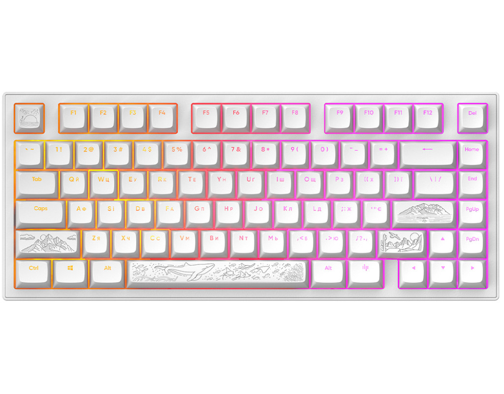 | Клавиатура Dark Project ALU81 Terra Nostra — это настоящий синтез инновационного дизайна и изысканности. Изготовленная из полностью алюминиевого корпуса, клавиатура выглядит стильно и надежно. Гравировка на корпусе подчеркивает связь с природой, что придаёт ей особый шарм и усиливает ощущение аутентичности. Механические переключатели G3MS Moonstone обеспечивают плавность и точность нажатий, даря истинное удовольствие при наборе текста. Важной особенностью является возможность горячей замены переключателей, что позволяет кастомизировать клавиатуру до мелочей. Это обеспечивает уникальную гибкость и возможность настройки под любые потребности пользователя. Несравненная RGB подсветка клавиш создаёт атмосферу восхищения, добавляя стиля и индивидуальности. Поддержка украинской и английской раскладки гарантирует удобство и универсальность в использовании. Компактный формат делает эту клавиатуру идеальной для тех, кто ограничен в пространстве. PBT кейкапы устойчивы к химическим воздействиям, что обеспечивает продолжительный срок службы и сохранение внешнего вида. Подключение через USB интерфейс обеспечивает скорость и стабильность. Совместимость с Windows, MacOS и Linux делает ALU81 Terra Nostra незаменимым инструментом для любой операционной системы. Эта клавиатура — не просто устройство для ввода информации, а настоящий партнёр, который повышает вашу продуктивность и комфорт. Выбирайте Dark Project ALU81 Terra Nostra для синергии технологий и природы в вашем рабочем пространстве. |