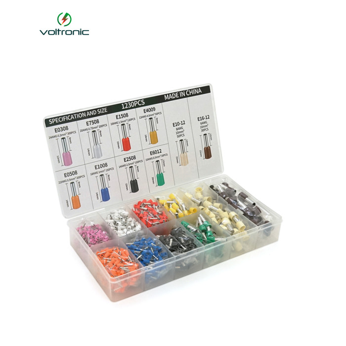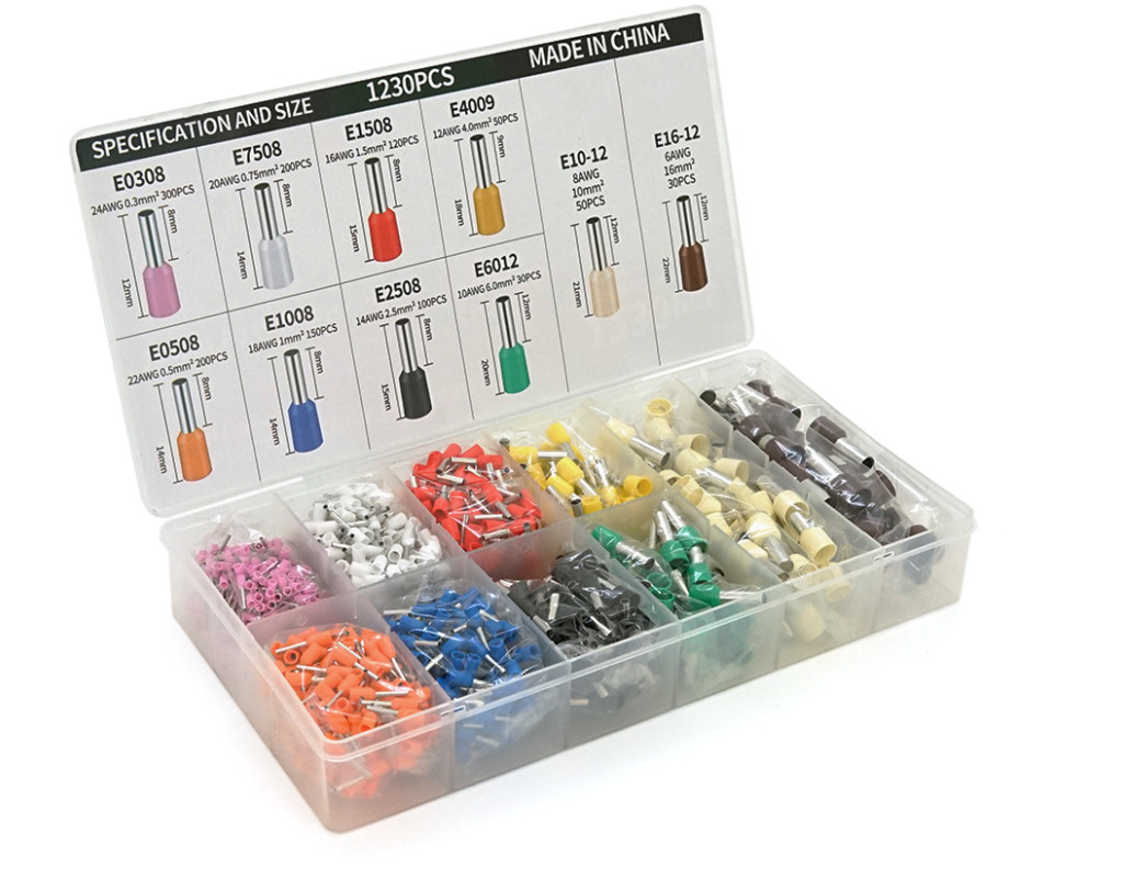 Набір клем / наконечників 1230шт(E0308v-300,E0508o-200,E2508bl-100,E1008b-150,E1508r-120,E4009gr-100,E7508w-200,E6012g-30,E1012br-50,E1612p-30)у боксі