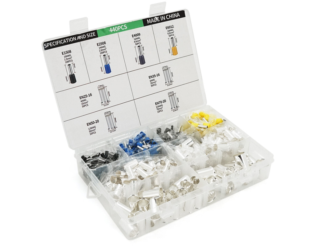 Набір клем / наконечників 440шт (E2508b-100, E1508bl-100, E4009gr-50, E6012-50, EN3516-50, EN5020-20, EN2516-50, EN7020-15) у боксі