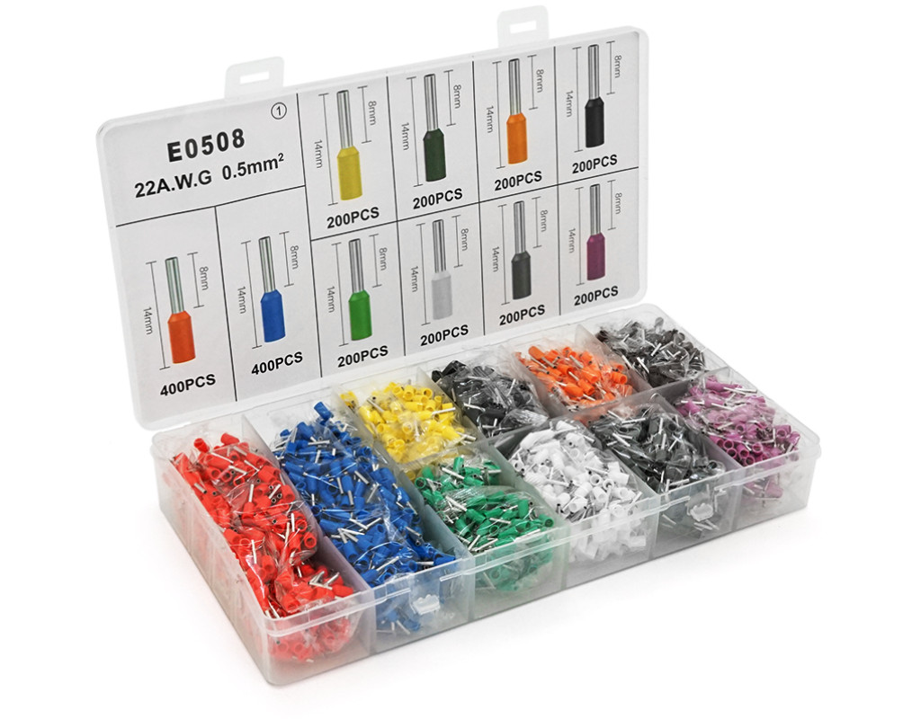 Набір клем / наконечників 2400шт VE0508 (R-400, B-400, Y-200, Bl-200, O-200, Br-200, G-200, W-200, Gr-200, V-200) у боксі