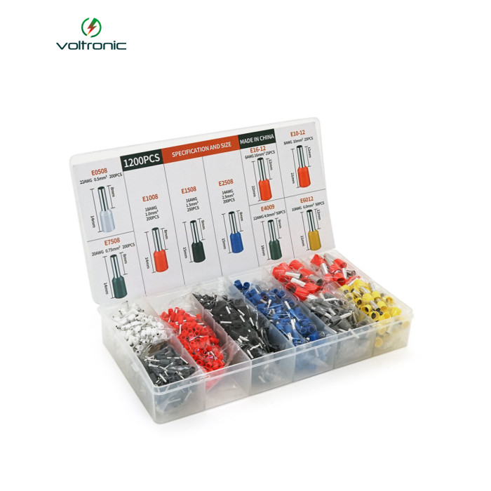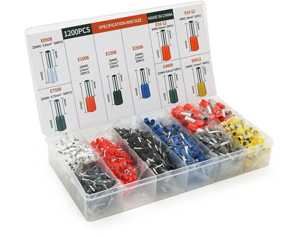 Набір клем / наконечників 1200шт (E0508w-200, E7508g-200, E1008r-200, E1508bl-250, E2508b-200, E4009gr-50, E6012y-50, E1012r-25.E1612r-25) в боксі