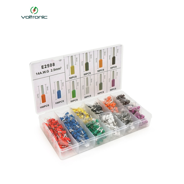 Набір клем / наконечників 600шт VE2508 (R-100, B-100, Y-50, Bl-50, O-50, P-50, G-50, W-50, Gr-50, V-50) боксі
