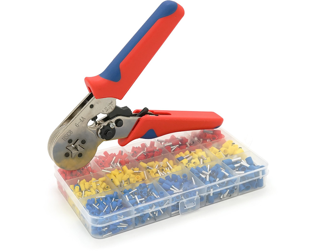 | Кримпер HCS8 6-4A для обтиску кабельного наконечника, blue-red, набір кабельних наконечників (VE0508, VE1508, VE1008, VE4009, VE2508) |