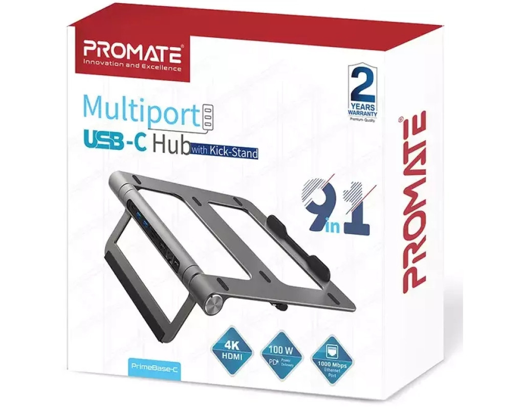 Promate PrimeBase-C — портативный хаб и складная подставка в одном устройстве. С легкостью поместится в сумку и добавит функциональности твоему рабочему пространству, где бы ты не находился. Особенности: