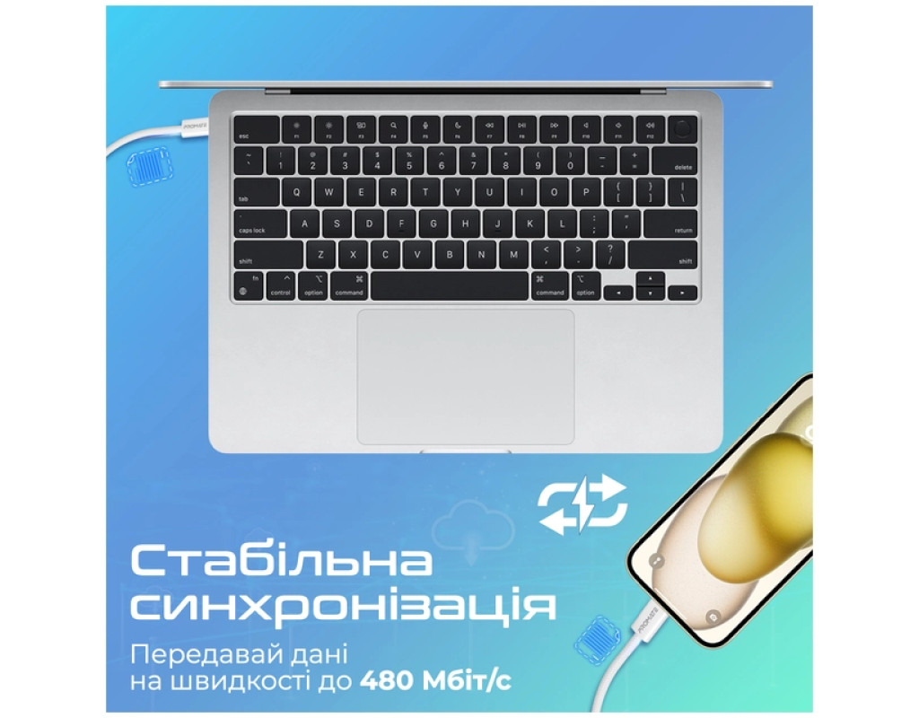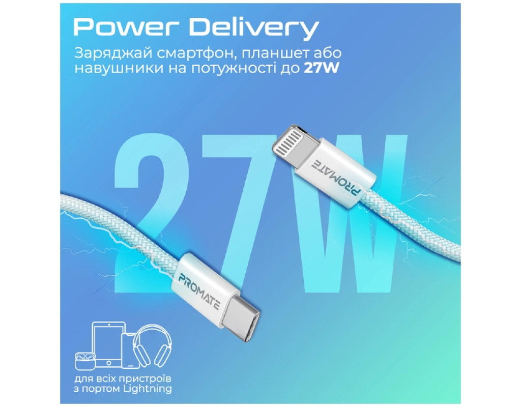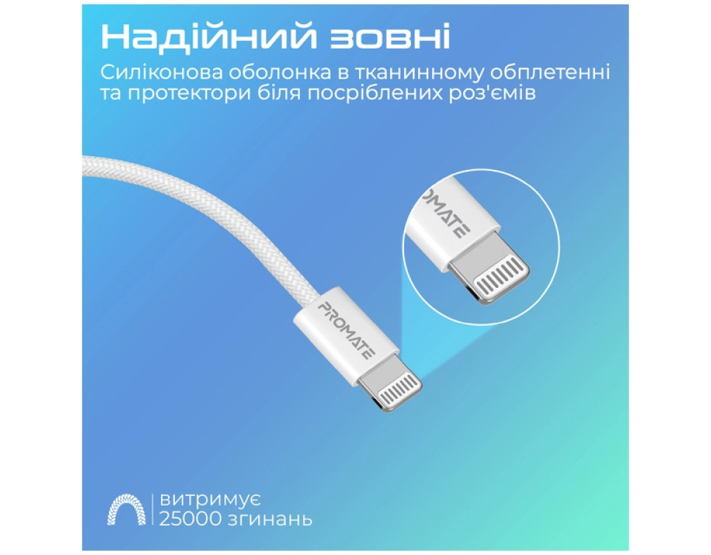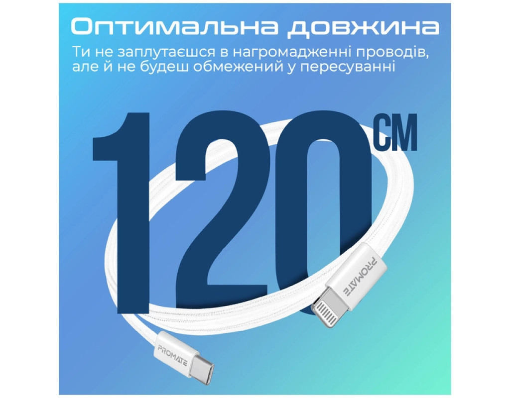 Дата кабель USB-C to Lightning 1.2m Promate (ecoline-ci120.white)