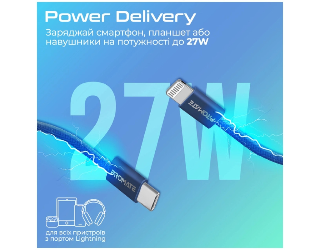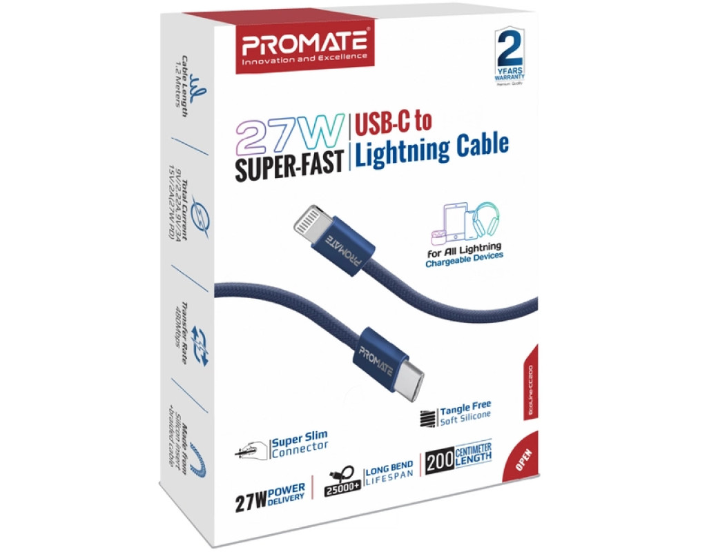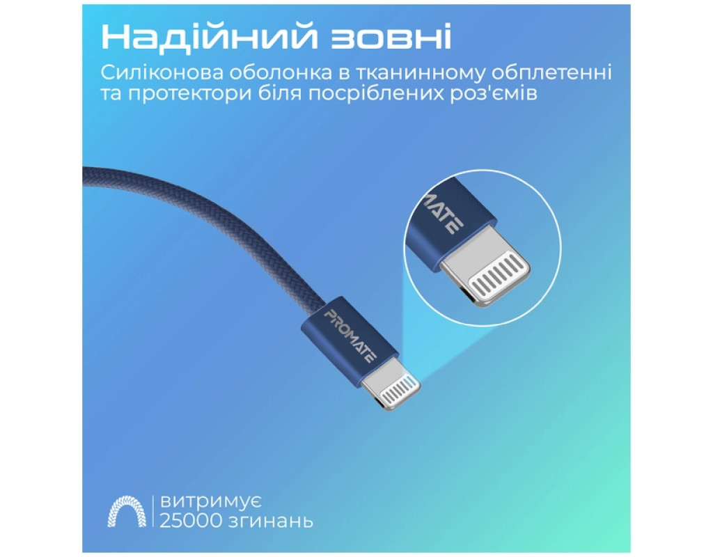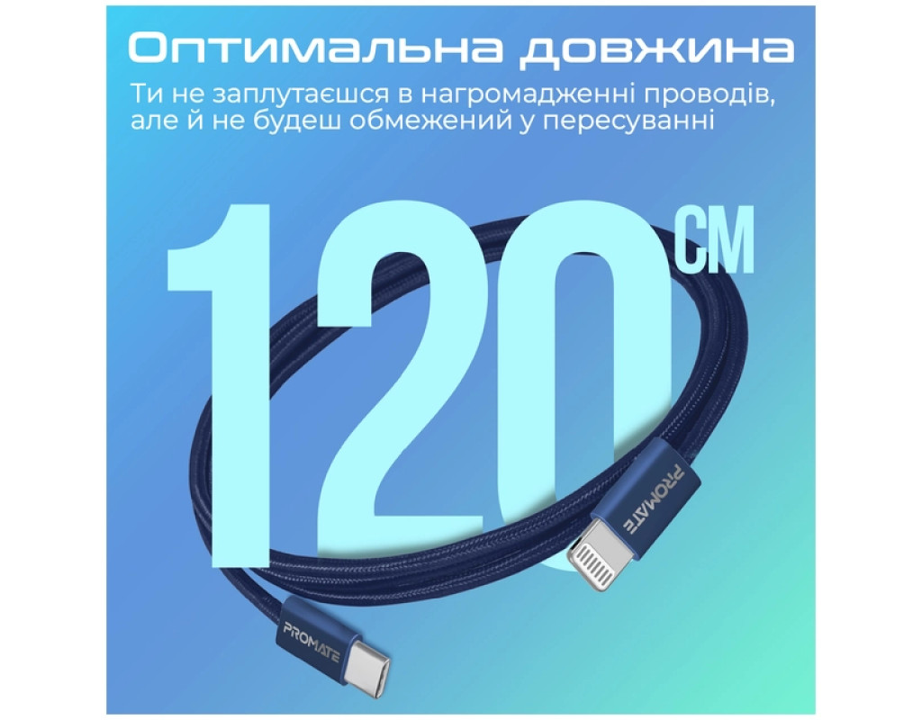 Дата кабель USB-C to Lightning 1.2m Promate (ecoline-ci120.navy)