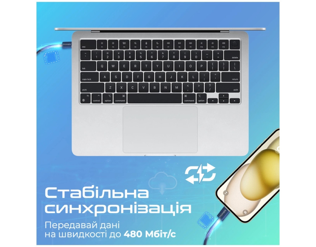 Тип - кабель, Тип коннектора 1 - USB Type-C, Тип коннектора 2 - Lightning, длина - 1.2 м, Номинальный ток - 3 А, 27 W, Цвет - синий