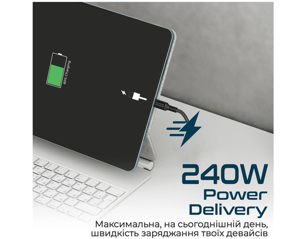 Тип - кабель, Тип коннектора 1 - USB Type-C, Тип коннектора 2 - USB Type-C, длина - 2 м, Номинальный ток - 5 А, 8K 60Hz, 40 Гбит/с, 240 W, Цвет - черный