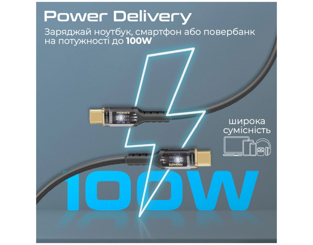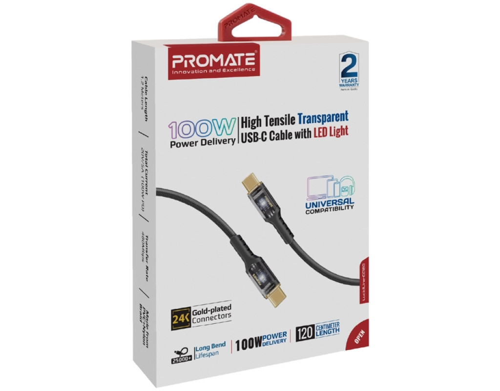 Дата кабель USB-C to USB-C 1.2m Promate (lucidline-cc120.black)