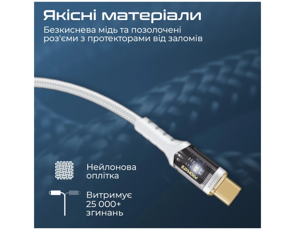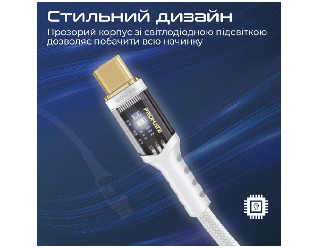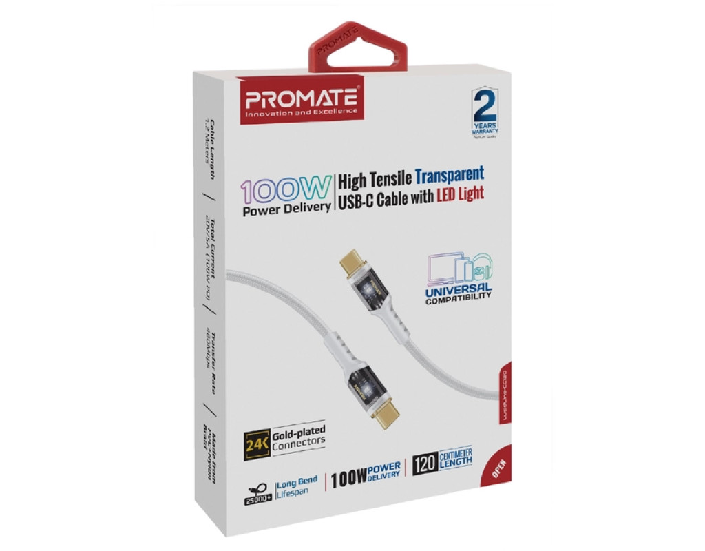 Дата кабель USB-C to USB-C 1.2m Promate (lucidline-cc120.white)