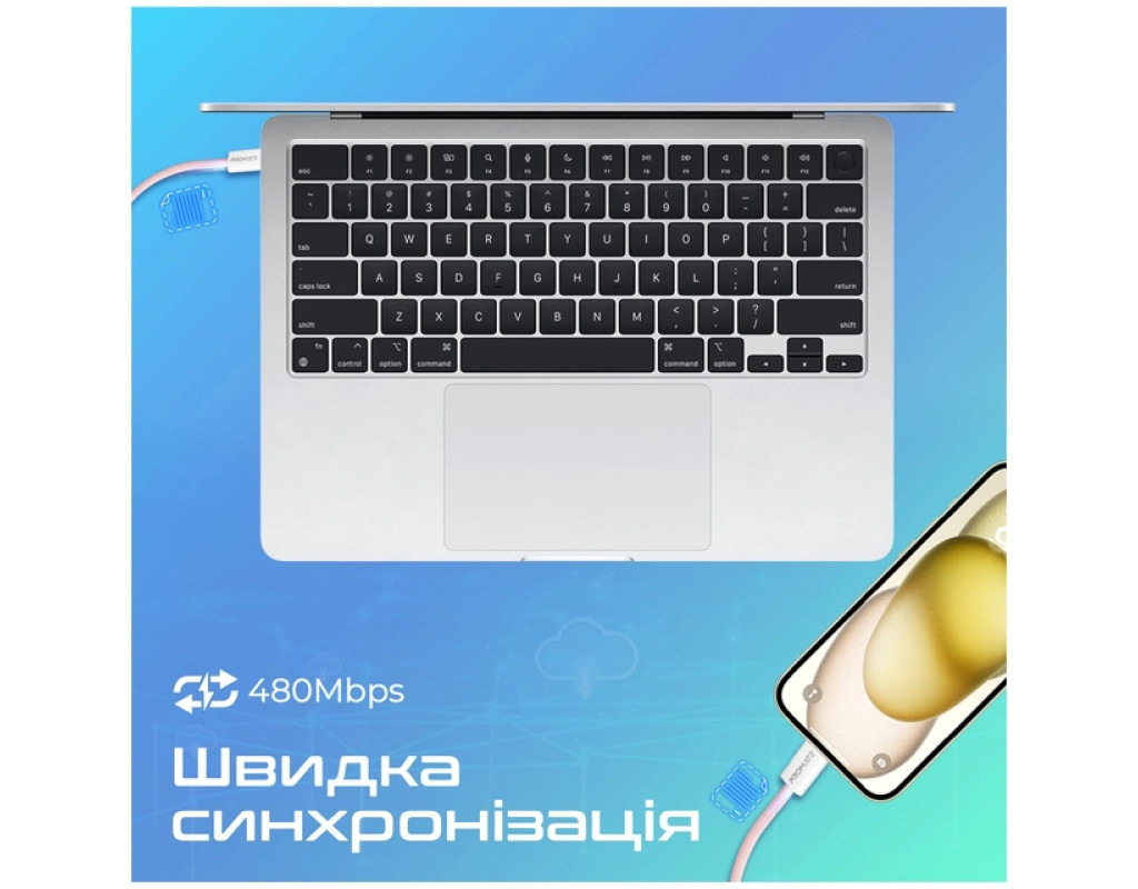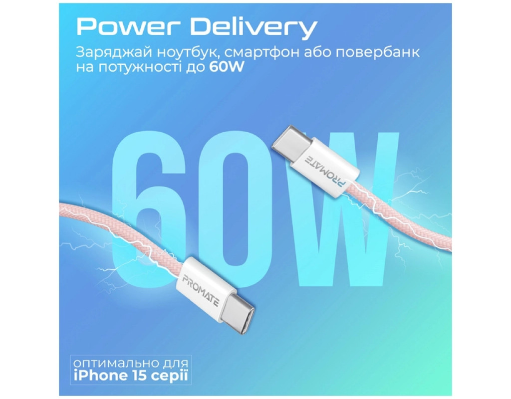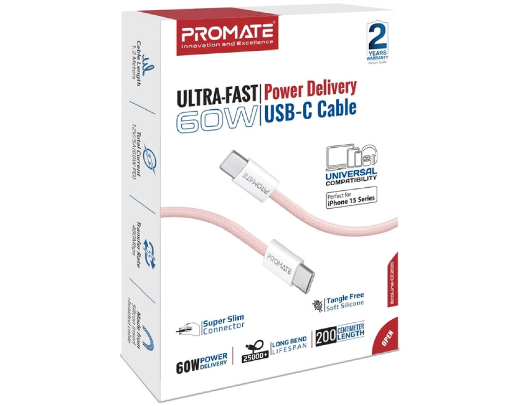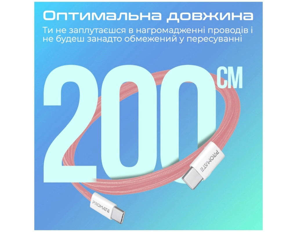 Дата кабель USB-C to USB-C 2.0m Promate (ecoline-cc200.pink)