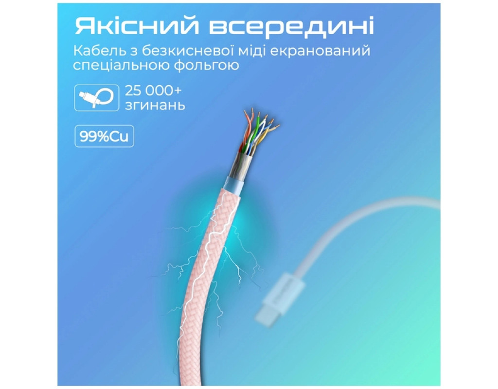 Тип - кабель, Тип коннектора 1 - USB Type-C, Тип коннектора 2 - USB Type-C, длина - 2 м, Номинальный ток - 3 А, 60 W, Цвет - розовый